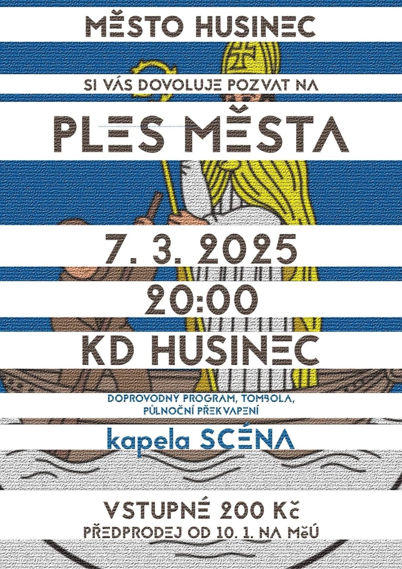 Srdečně vás zveme na Ples města Husinec, který se uskuteční 7. března 2025 od 20:00 v Kulturním domě.