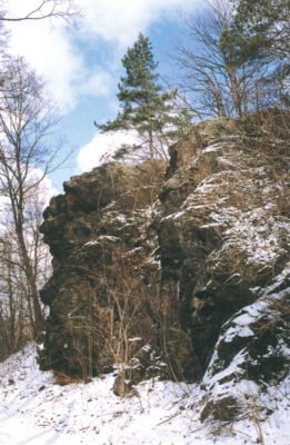 Také jiná pověst se ještě udržela mezi pamětníky: „Za jedné velké bouře odpočíval Jan Hus, jda z Prachatic ze školy, pod touto skalou, když blesk právě do jalovcového keře naproti skále udeřil a tento se vzňal. Janovo matka, majíc obavu, aby se při bouři nic nestalo, šla mu naproti a zastala jej, jak sedí pod zmíněnou skalou zamyšlen a dívá se na hořící keř.